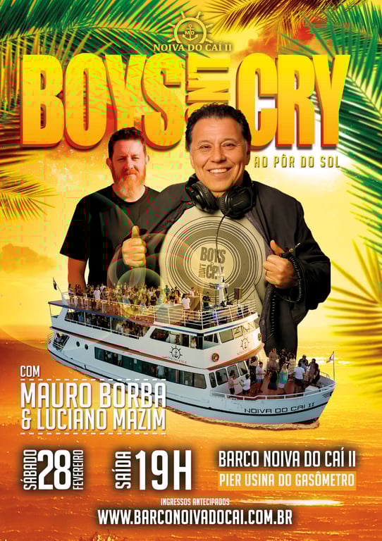 O Especial Festa Boys Don't Cry em Porto Alegre promete um final de tarde e noite a bordo inesquecível para os fãs de boa música. Este evento celebra a essência dos clássicos dos anos 80 e 90, trazendo à tona a nostalgia através de hits icônicos que marcaram gerações. Com um por do sol vibrante e uma seleção musical cuidadosamente escolhida, a festa garante animar todos os presentes, proporcionando momentos de pura alegria e descontração. O Dj Mauro Borba, anfitrião do evento, é especialista em criar uma atmosfera envolvente, fazendo com que ninguém fique parado na pista de dança.